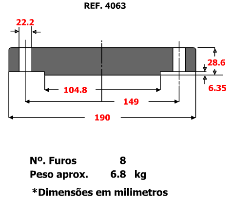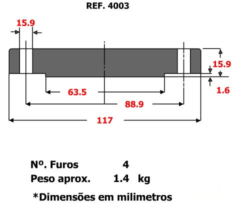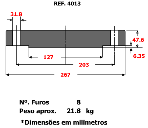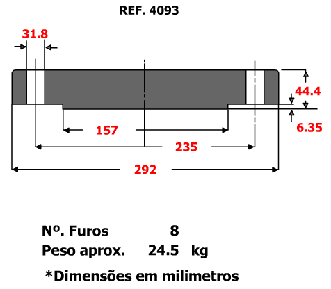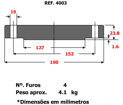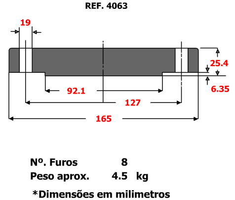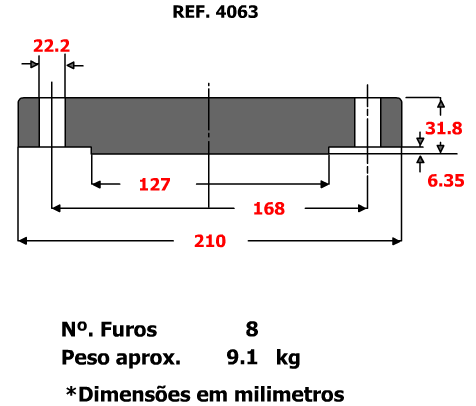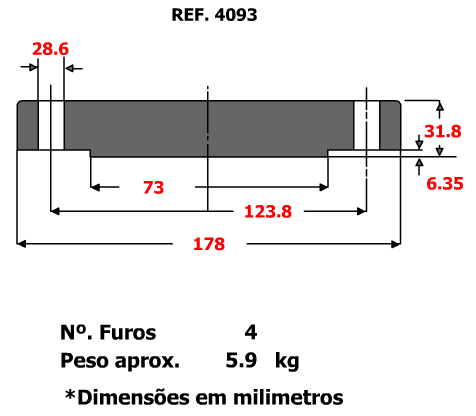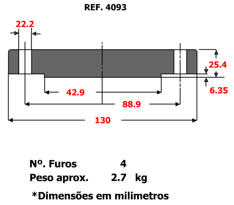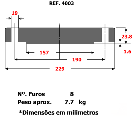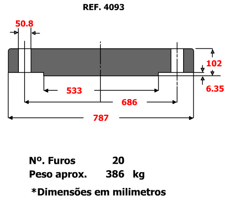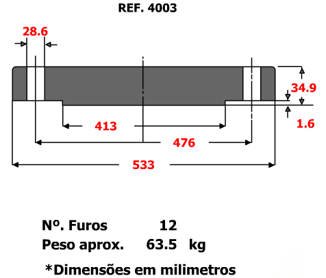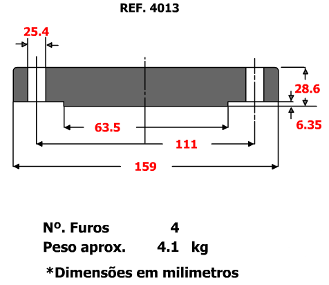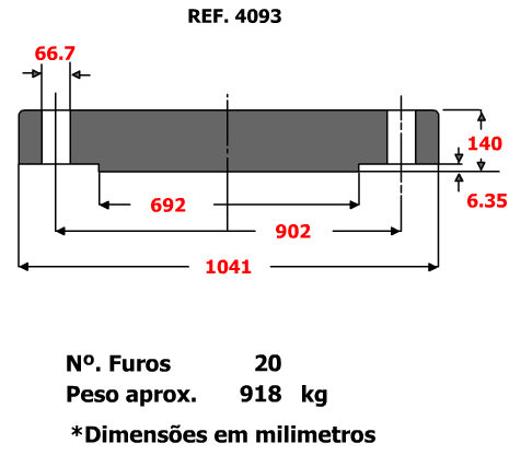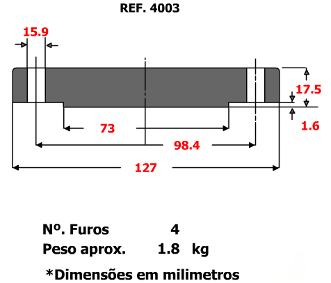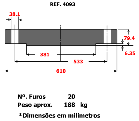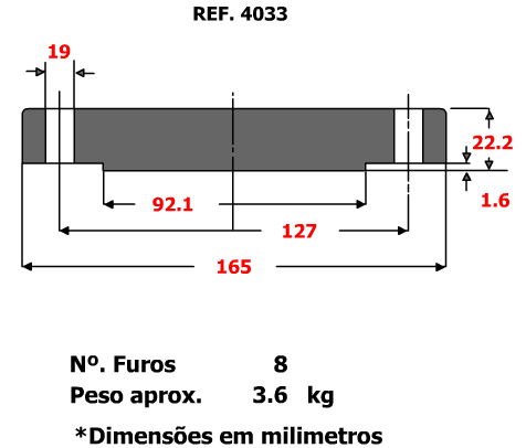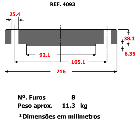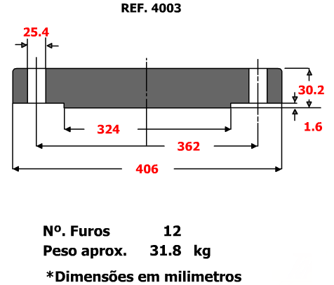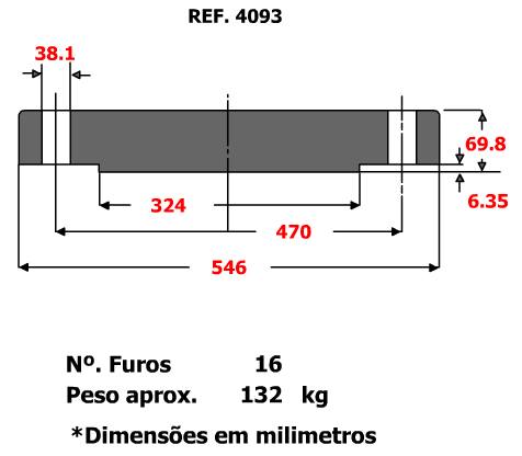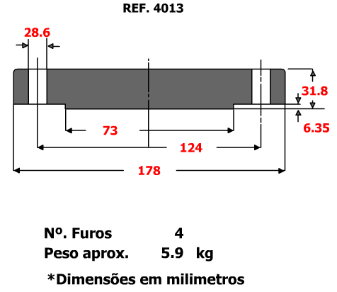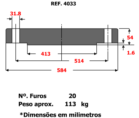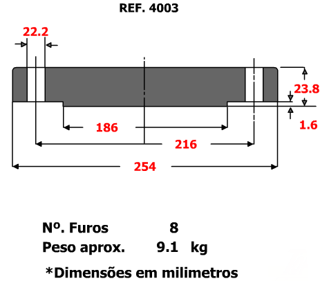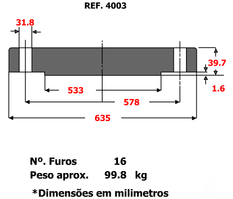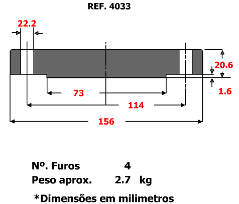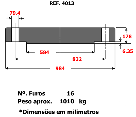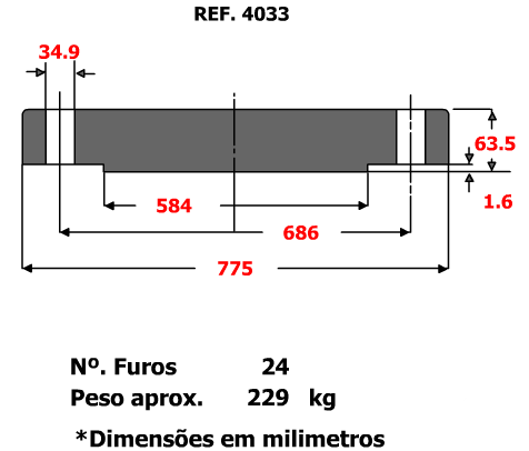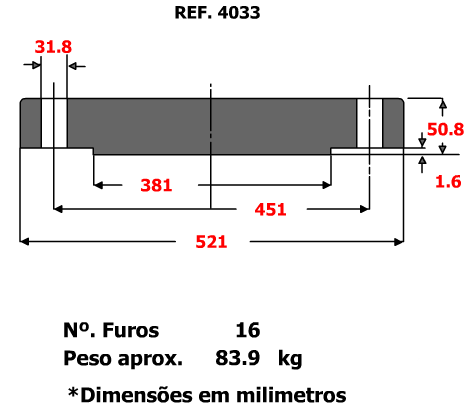 Os flanges cegos Unival podem ser encontrados nas seguintes especificações: