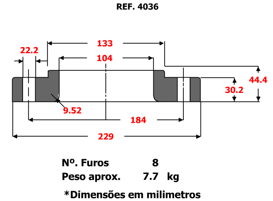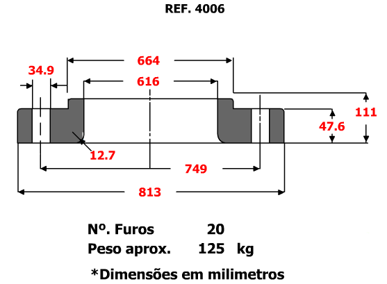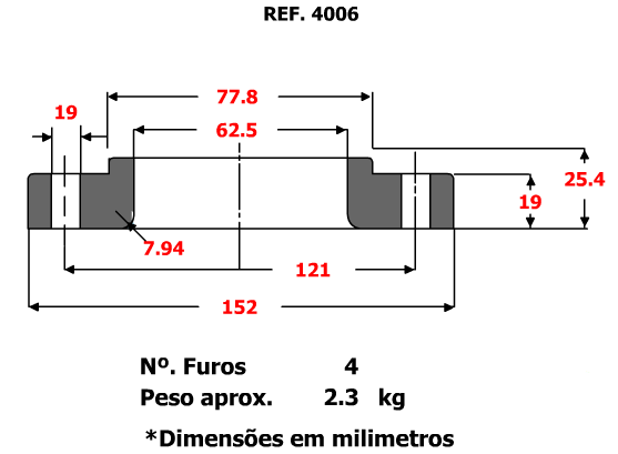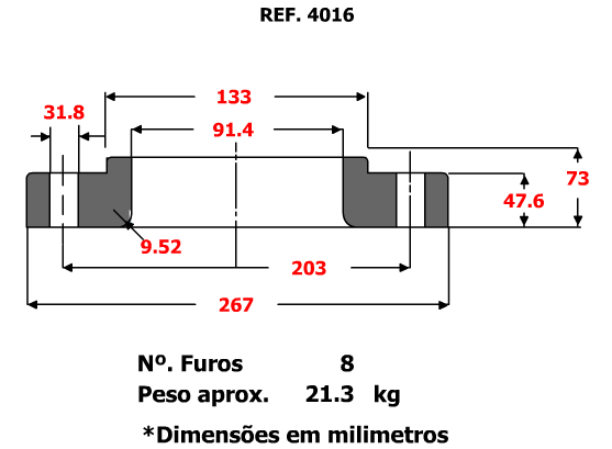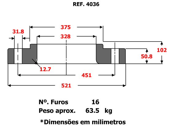 Empregado em montagens de linhas que utilizem pestanas, não está sujeito à corrosão pelo fluido, por ser fabricado em aço carbono.