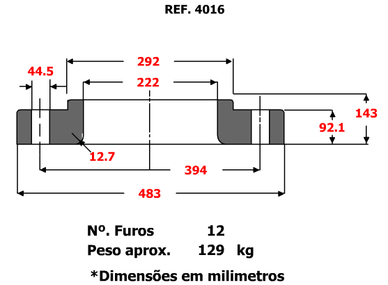 Os flanges lap-joint podem ser encontrados nas seguintes especificações: