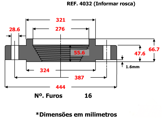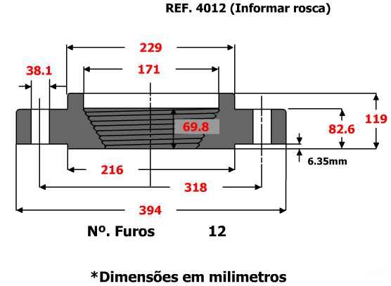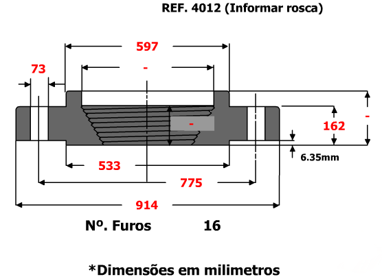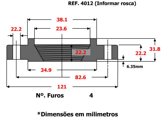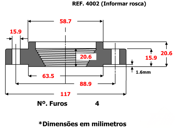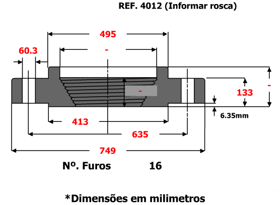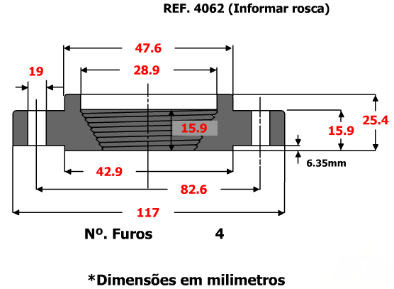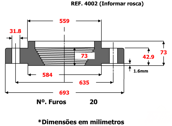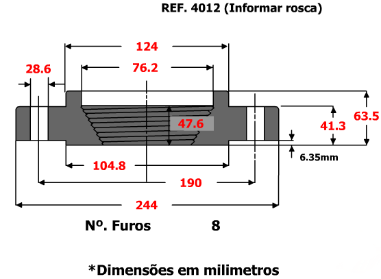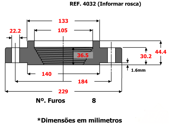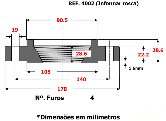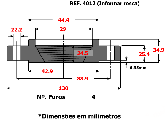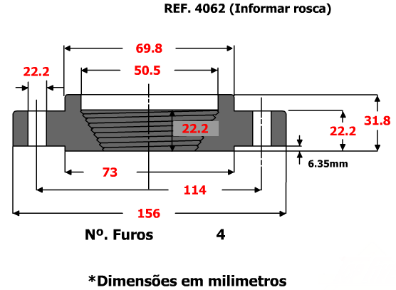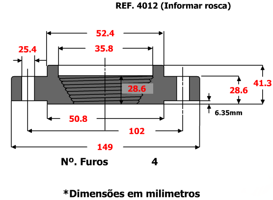 O flange roscado é de fácil montagem. Permite sua utilização em temperaturas moderadas e variadas condições de pressão e esforços moderados.