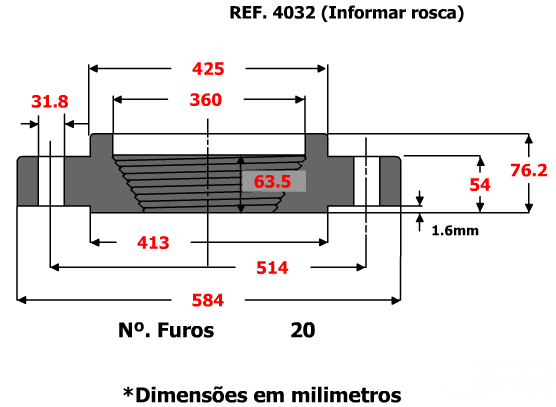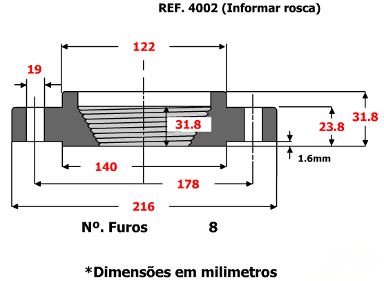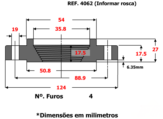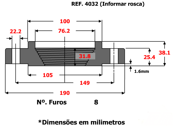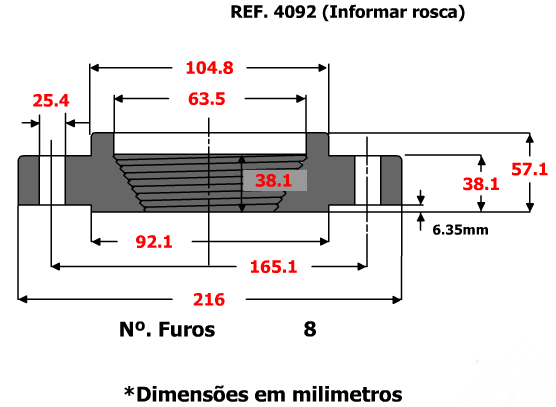 Os flanges roscados podem ser encontrados nas seguintes especificações: