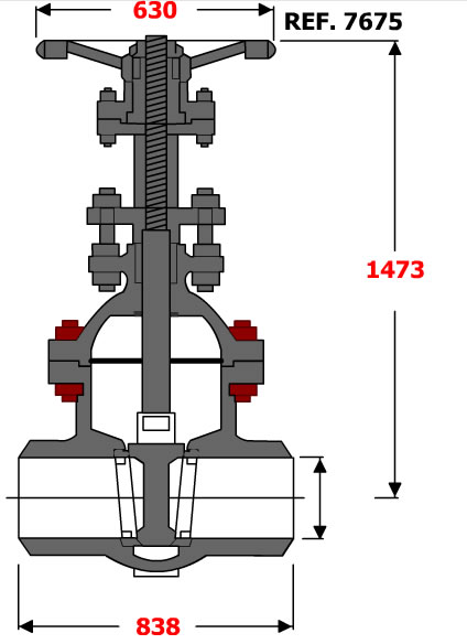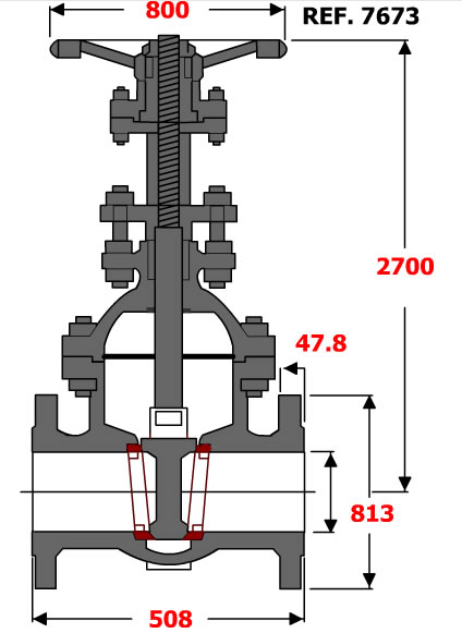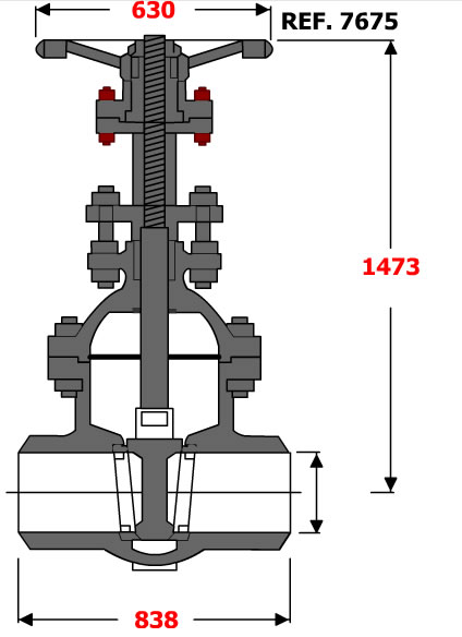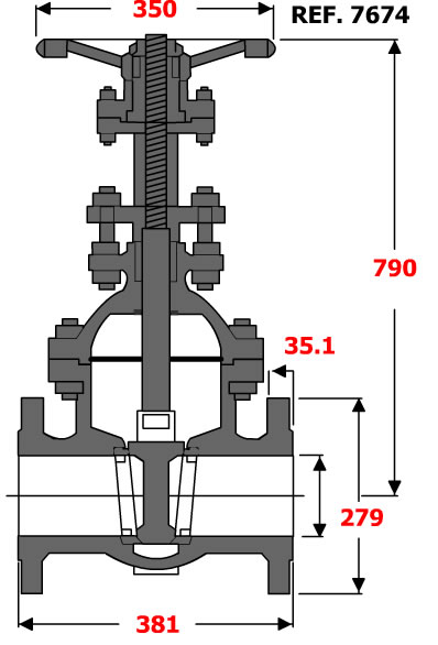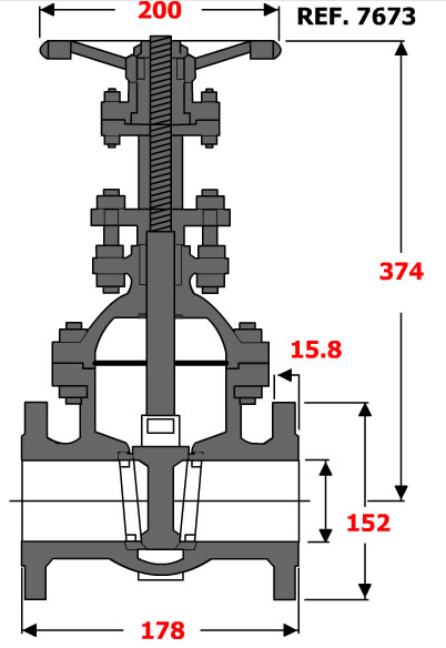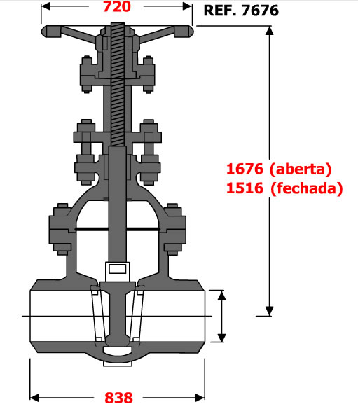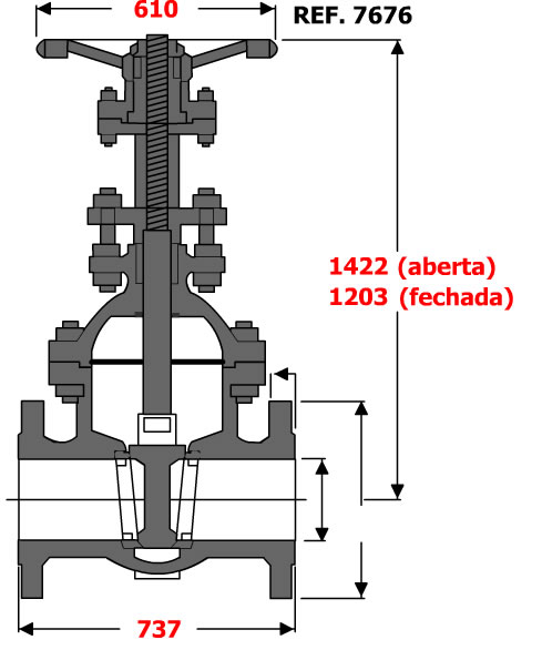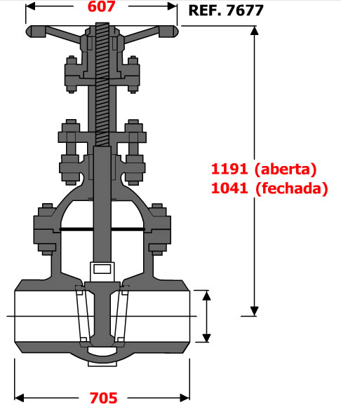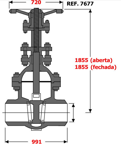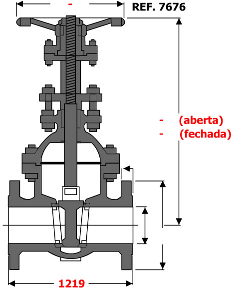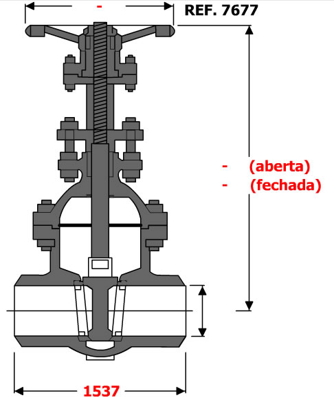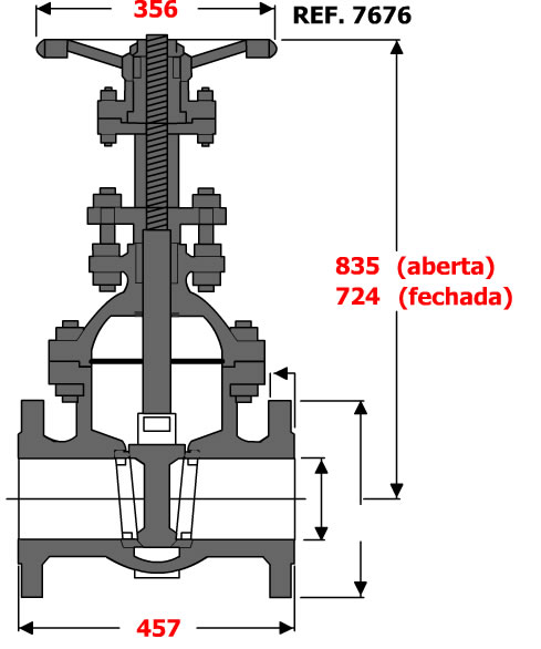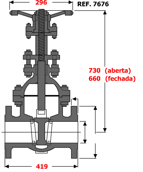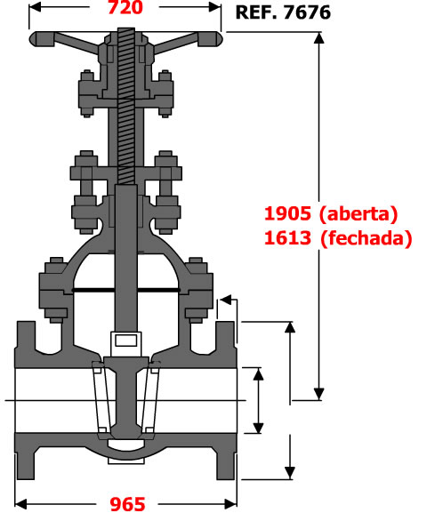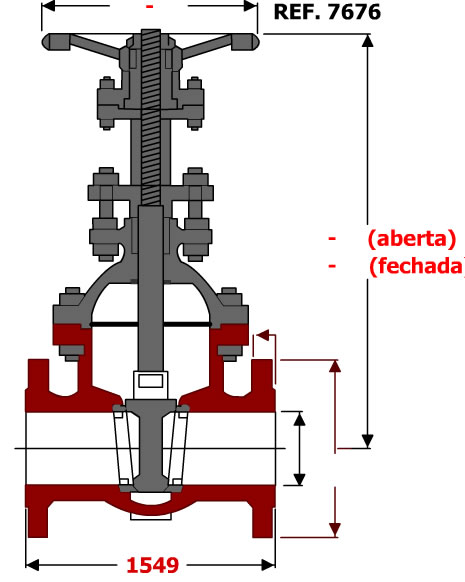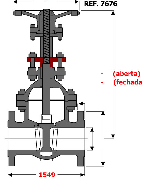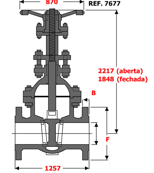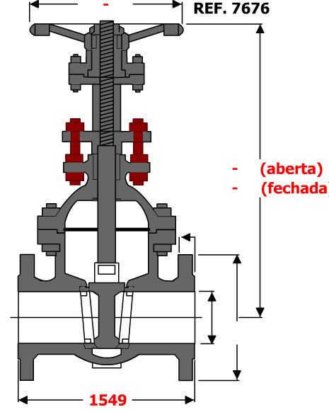 1 - corpo 2 - Anel do Corpo 3 - Cunha 4 - Anel da Cunha 5 - Haste 6 - Junta 7 - Parafuso c/porca 8 - Castelo 9 - Gaxeta 10 - Preme Gaxeta 11 - Estojo c/ porca 12 - Sobreposta 13 - Parafuso c/porca 14 - Tambor 15 - Volante